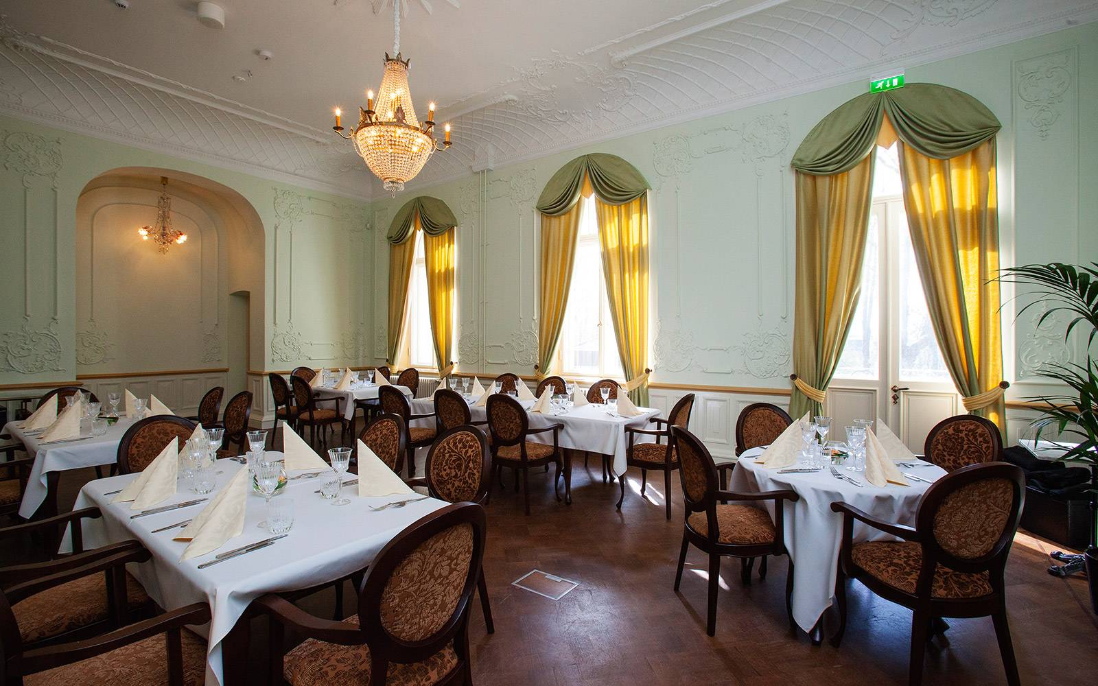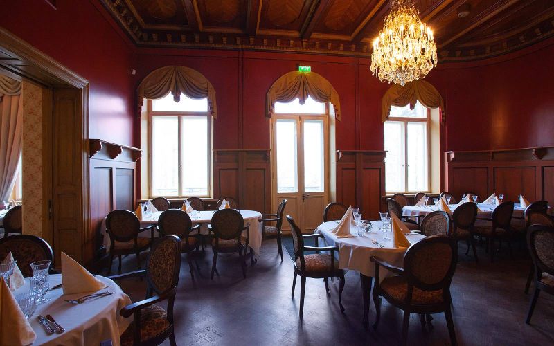 Näsilinnan arvokkuutta huokuva aulatila toivottaa vieraat lämpimästi tervetulleeksi. Näsilinnan ensimmäisessä kerroksessa sijaitsevat tilausravintola von Nottbeck, kahvila Café Milavida ja kaikkiaan viisi uniikkia ravintolasalia.