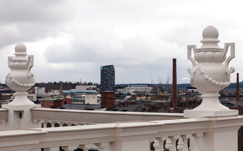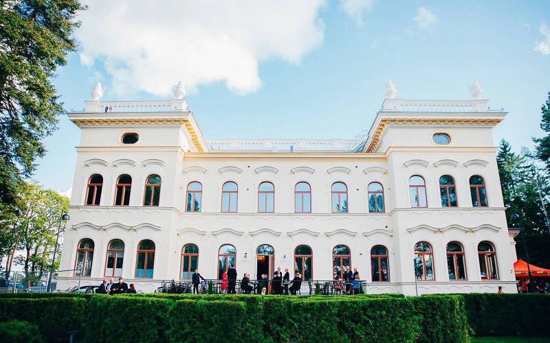 Rakennuksen etelä- ja pohjoisseinustoilla sijaitsevat viihtyisät ja tilavat kesäterassit. Ympäröivä puisto luo tunnelmaa terasseille.